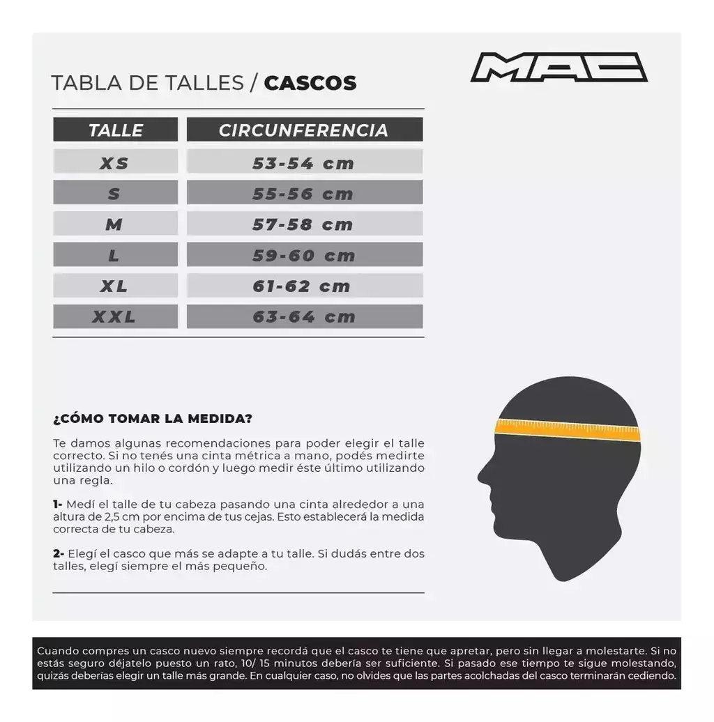 Medí el contorno de tu cabeza 2 cm por encima de las cejas y comparalo con la tabla de talles disponible en la galería.