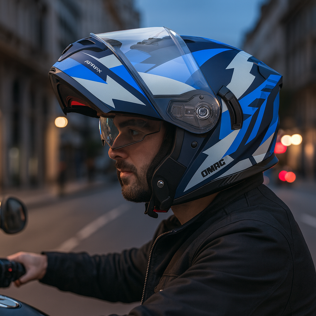 ✨ Diseño moderno azul mate: gráfica deportiva, acabado elegante y coloration que combina con diferentes estilos de moto.