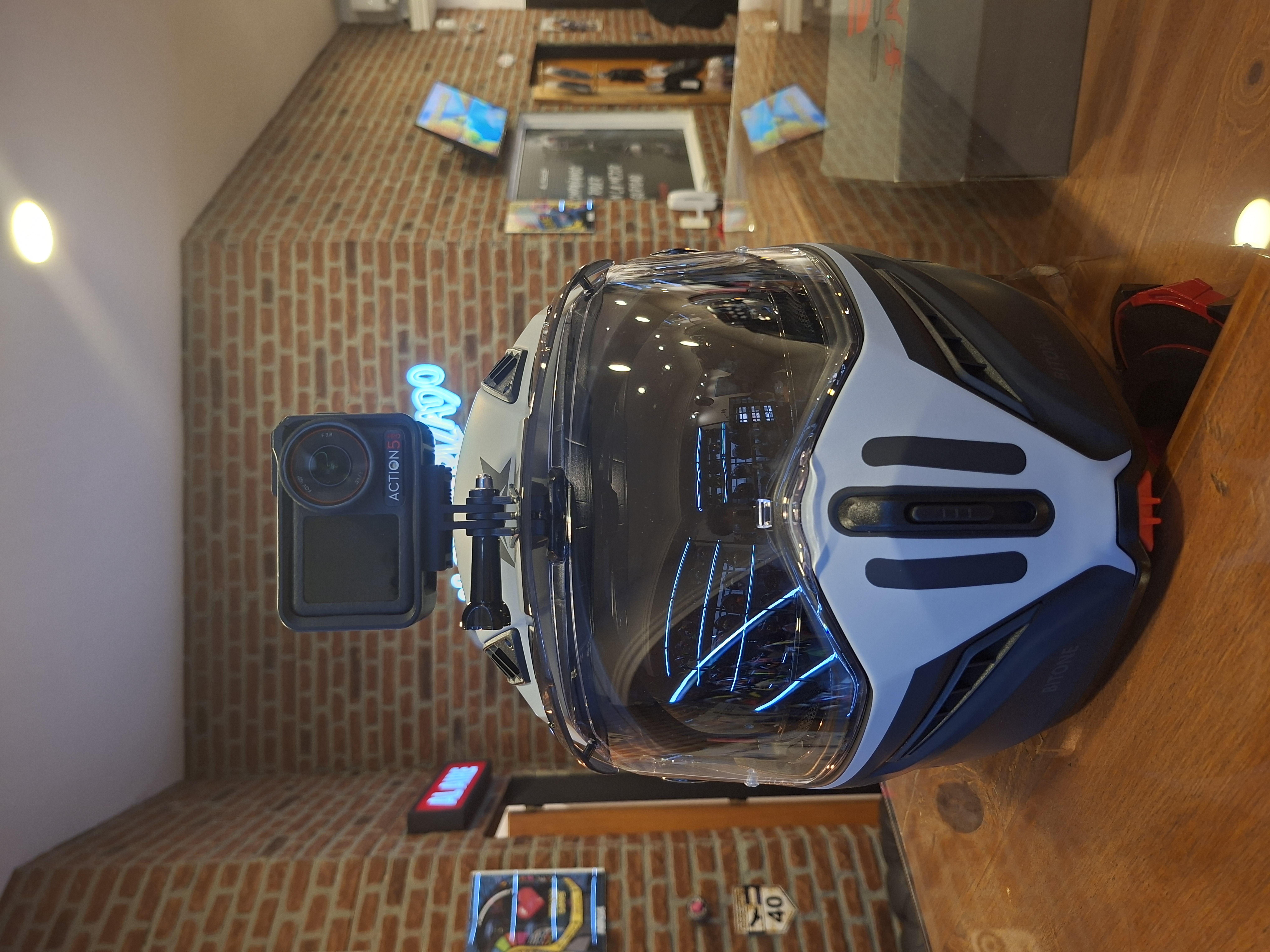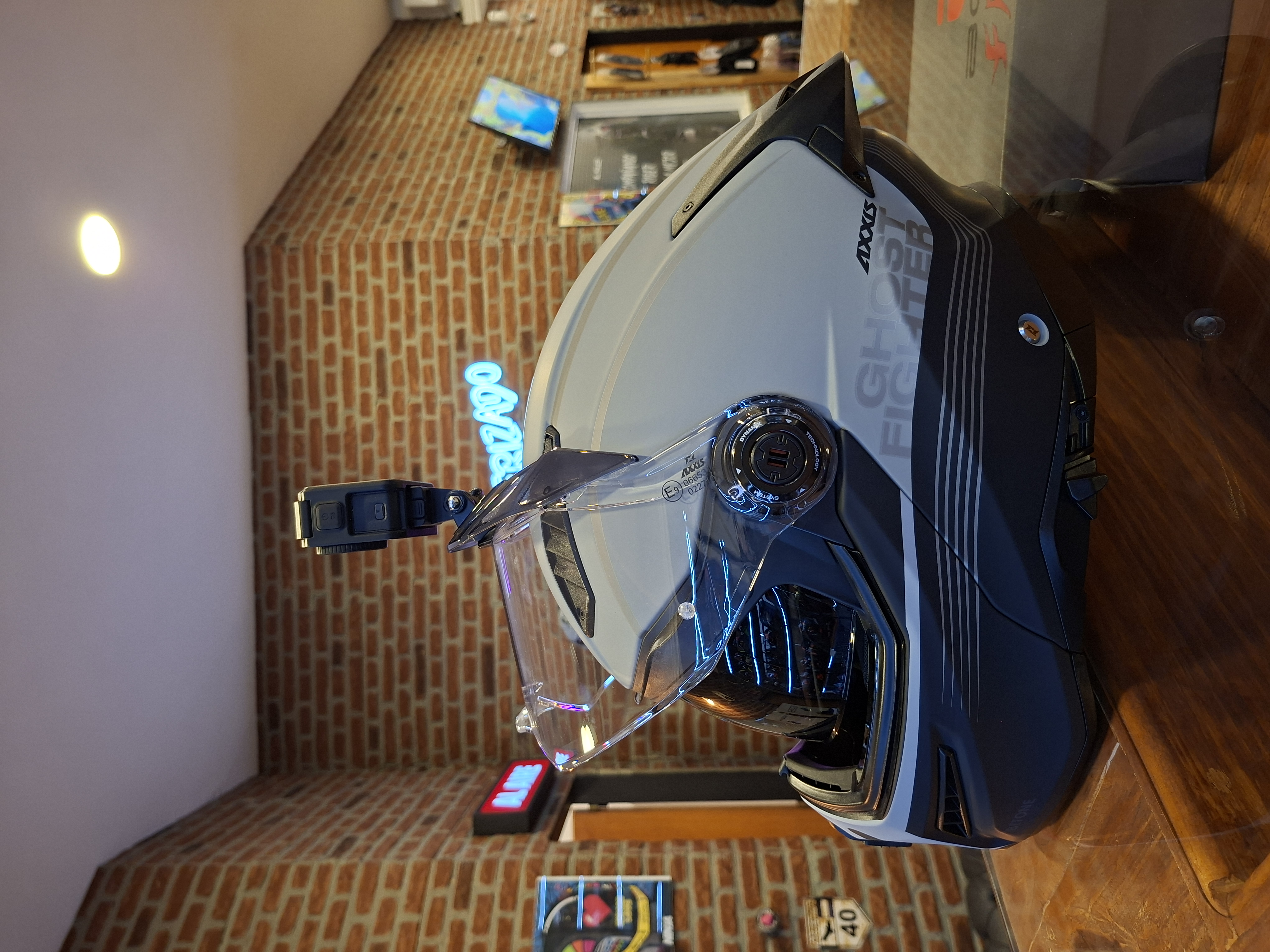 ¡También cuenta con su soporte de Go Pro en forma de visera para colocar sobre el visor!