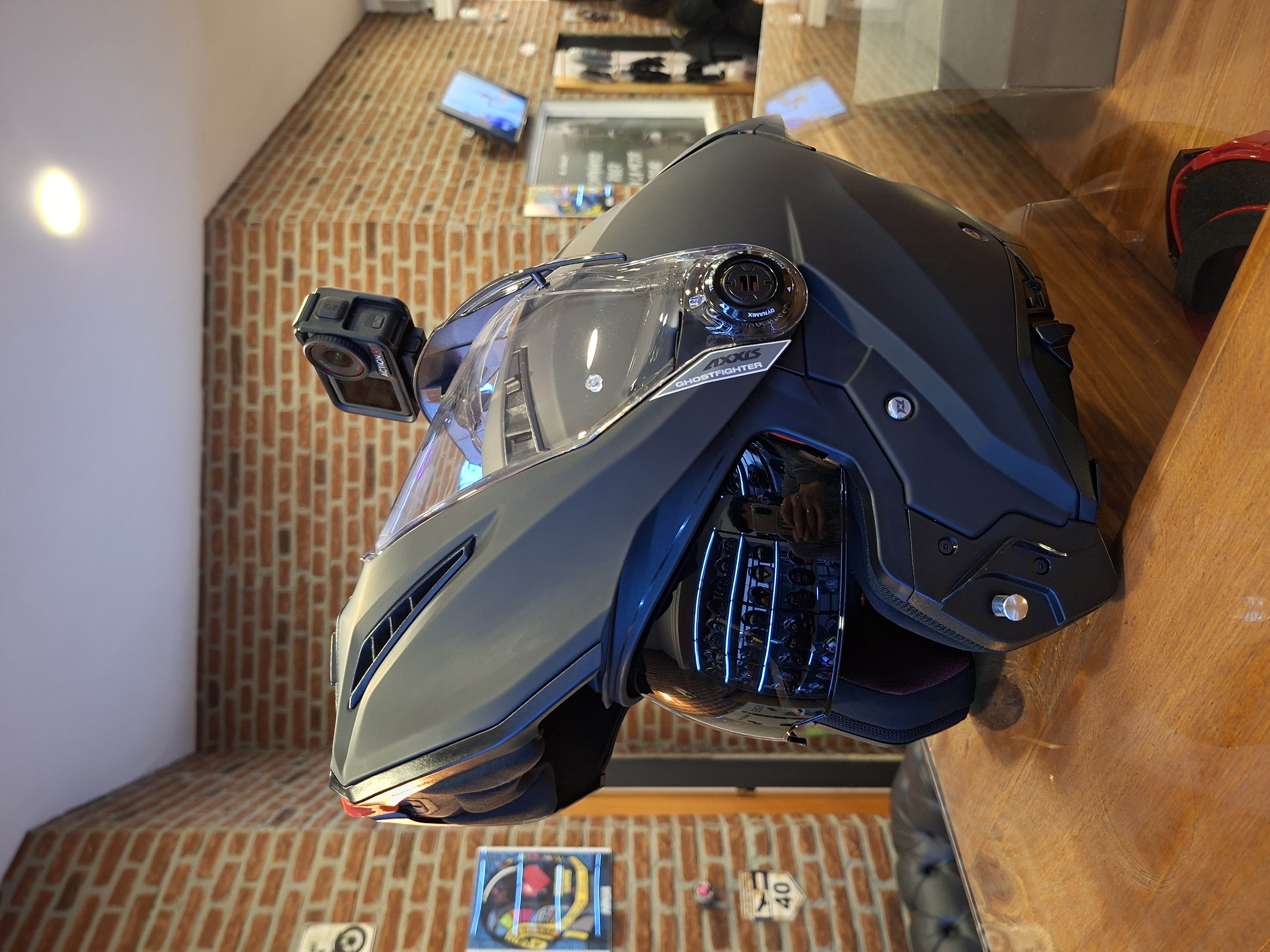 ¡También cuenta con su soporte de Go Pro en forma de visera para colocar sobre el visor!
