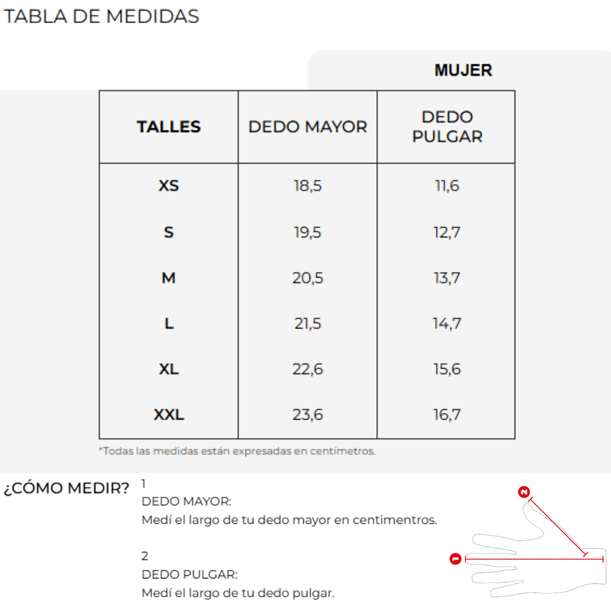 Medí el contorno de tu palma y compará con la tabla de talles en la galería. Si no acertás, el primer cambio es gratis.